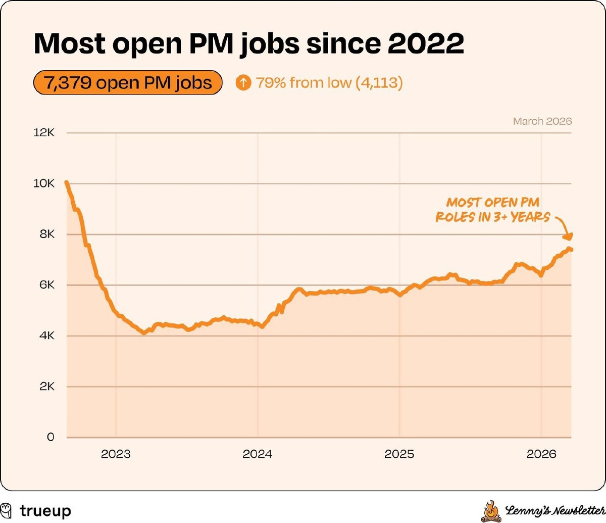 Еще два года назад люди массово паниковали из-за layoffs и говорили, что AI всех заменит. Свежие данные по рынку вакансий на начало 2026 говорят ровно обратное. Цифры: - 7,300+ открытых позиций продакт-менеджеров глобально, на 75% выше дна 2023 года - 67,000+ инженерных вакансий, из них 26,000 только в США - AI-роли растут по траектории хоккейной клюшки, треть всех AI-вакансий сконцентрирована в Bay Area Количество PM-позиций на максимуме с 22 года. Инженерных вакансий больше чем когда-либо. А вакансии рекрутеров почти вернулись на пик - то есть компании настолько активно нанимают, что им не хватает людей, которые нанимают. Еще доля удаленки падает. Компании все чаще хотят людей в офисе, особенно на AI-роли. Навык работы с AI - это уже не "было бы неплохо". Это прямое конкурентное преимущество на рынке труда. И не только для разработчиков. PM, маркетологи, дизайнеры, которые умеют встраивать AI в свои процессы, стоят дороже. Данные это подтверждают. Конечно, особенно актуально это