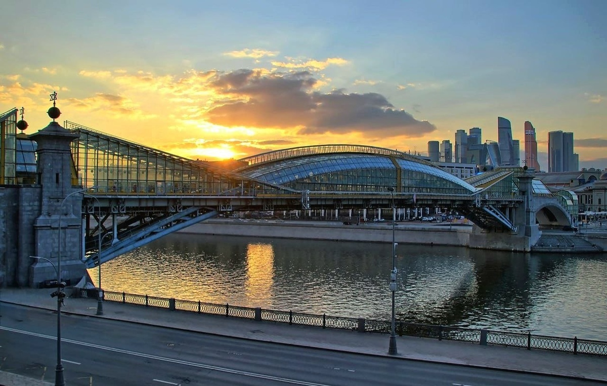 Москва. Весеннее утро. Ростовская набережная и мост Богдана Хмельницкого.