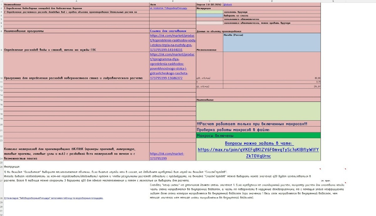 (внутренний водосток). Позволяет легко определить расходы дождевого стока с кровли здания, а также выполнить гидравлический расчетов трубопроводов водостока (определить диаметр, уклон, наполнение и скорость потока в трубопроводе в зависимости от расхода стоков, протекающих в нем). https://vk.com/market/product/3programma-dlya-opredelenia-raskhodov-poverkhnostnogo-stoka-i-gidravlicheskogo-rascheta-173795199-13686372