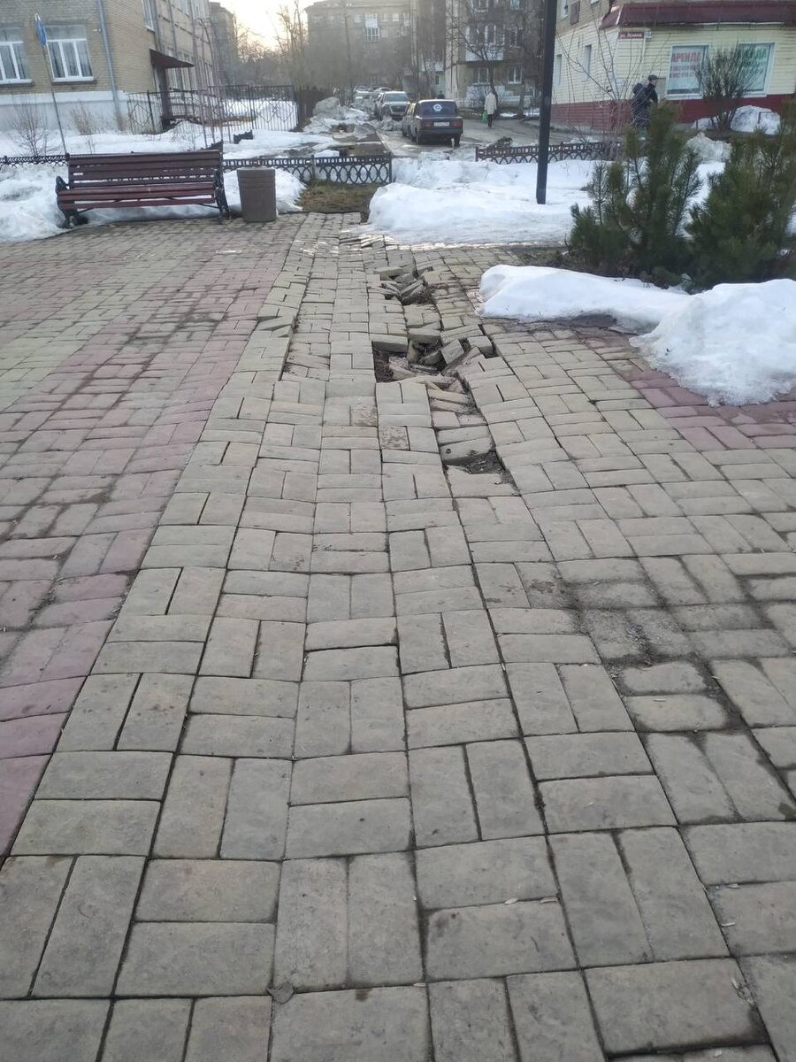 Он сообщает, что начинает затапливать сквер Победы в части, где дорожка ведет к пешеходному переходу к городской поликлинике. Подписчик отмечает, что в воде уже стоят рокарии. Также разрушается плитка над ливневкой, которая проходит под частью общественной территории. Житель отмечает, что уже полностью затоплена канава возле дублера ул. Ленина, талая вода активно поступает на пешеходные зоны. #нам_пишут #фотофакт