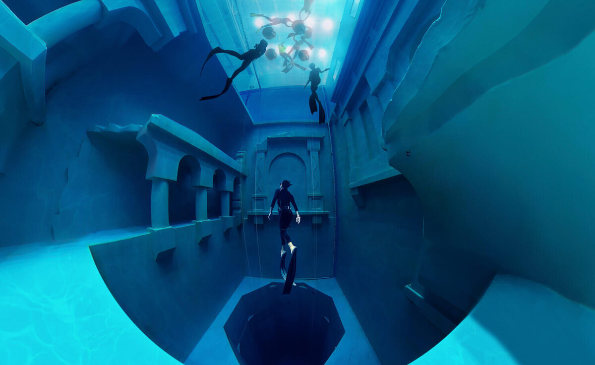 - 12–18 метров («Затонувший город») 🏛️⚓: Самый атмосферный уровень. Представьте себе пещерные лабиринты, гроты и арки. Эта зона создана для отработки навигации и пространственного мышления. Это как квест, где нужно управлять своим телом в трехмерном пространстве, проходя сквозь декорации затонувшего города.
