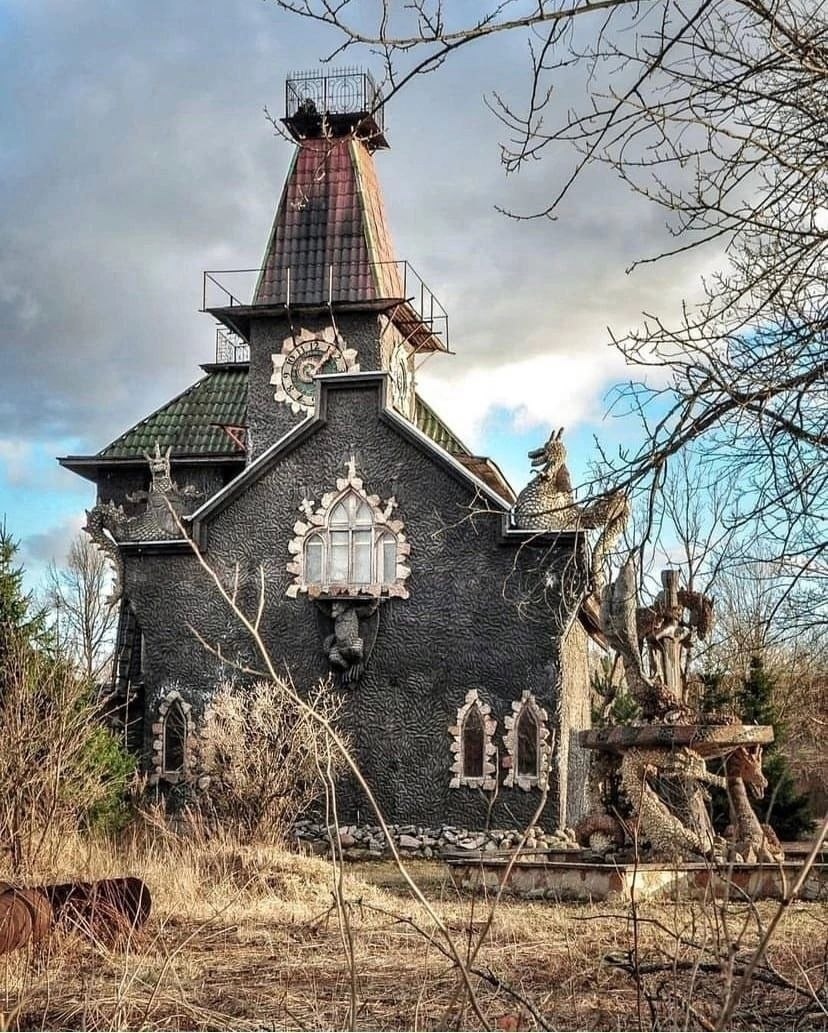 Здание напоминает антураж мистической сказки, населённой мифическими существами вроде вампиров, привидений и загадочных персонажей, живущих в полутьме долин. Крыша покрыта черепицей, украшена башенкой, старинные часы отбивают ход времени, узорчатые готические окна, шероховатость тёмных фасадов и даже затаившийся на углу здания дракон создают атмосферу таинственности. 📍Точка на карте Сегодня эта сказочная постройка — один из пяти домов, предлагаемых туристам для краткосрочной аренды на отдыхе. Когда дом свободен от гостей, территория открыта для прогулок и фотосессий. ⚡️Подпишись если ещё не⚡️ #ломоносов #петербург #путешествия #отдых #питер