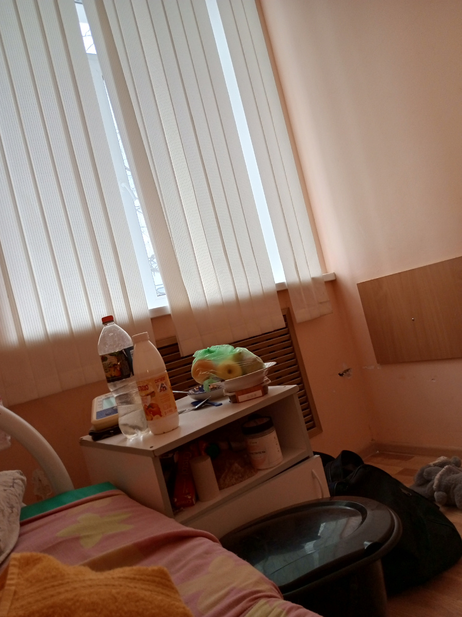 Я по-прежнему нахожусь в нашей центральной районной больнице. Писать как-то особо не о чем. Приходил Инна Робертовна. Мы сегодня у меня было запланировано множество обследований. В начале меня свозили к гинекологу в центральный корпус. Потом назад привезли в палату. После обеда опять я перелегла на каталку, с неё на машину снова в центральный корпус. Там мне сделал УЗИ практически всех органов. УЗИ почек печени и поджелудочной железы, УЗИ щитовидной железы, УЗИ сосудов шеи и сосудов ног, а также УЗИ сердца. Доктор сказала, что у меня всё нормально. Потом меня снова привезли в палату. Кормят здесь не ахти. На завтрак была овсяная каша, на обед щи, с без всякого намёка на мясо. На второе тушёная капуста с кусочком минтая . Это я оставила на ужин, потому что на ужин опять каша. Осталось в понедельник пройти гастроскопию, и от колоноскопии я отказалась. Так как с моей тазовыми нарушениями, чистить кишечник с помощью фортранса, ещё тот квест. Приходила двоюродная сестра, принесла разные вкусности, фрукты. Посидели с ней поговорили, взяла что-то себе на вечер, остальное она отнесла в холодильник, который находится в коридоре. У меня мечта в понедельник пройти гастроскопию, и может быть Инна Робертовна меня выпишет домой.