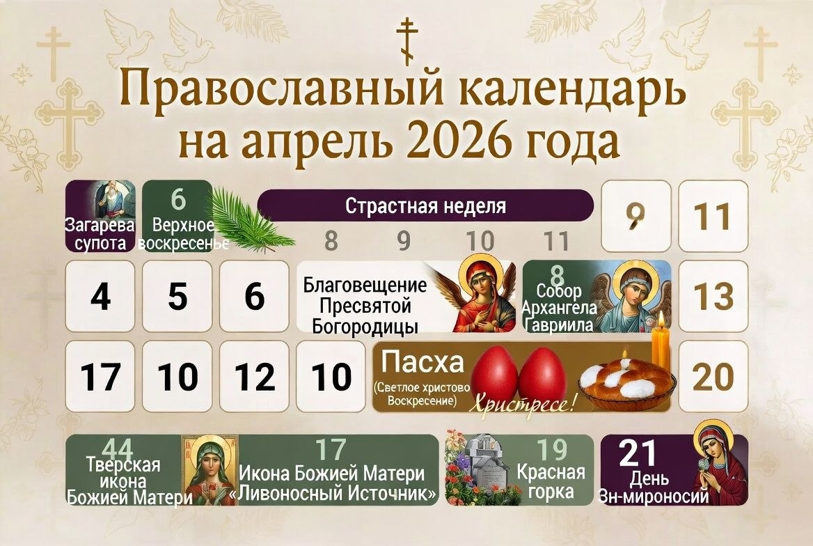 Церковным праздникам апреля 2026 года, готовый для копирования