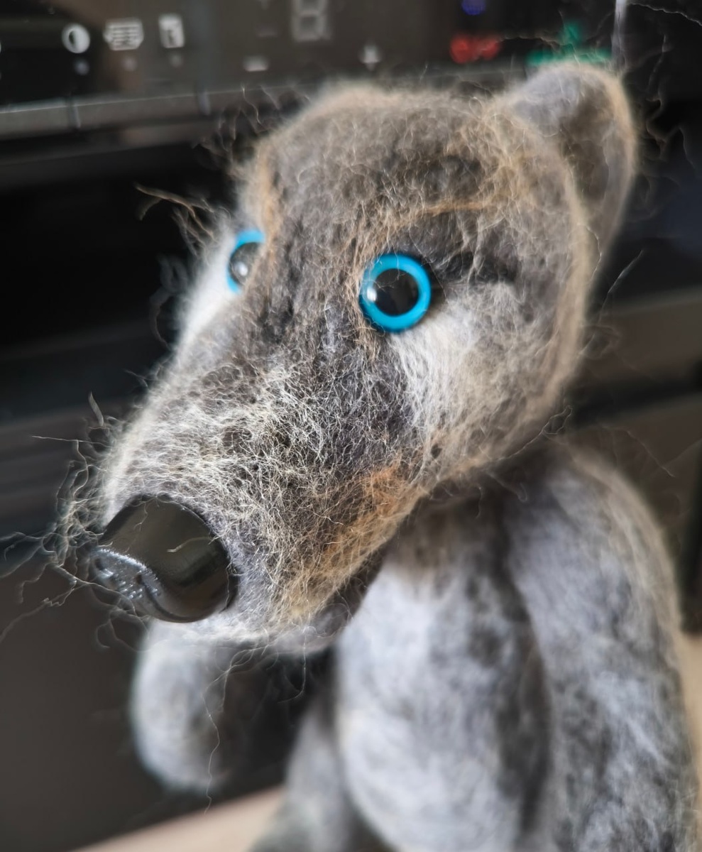 Не говоря уж о доступе к мессенджерам разным, духопротивным. Причины понятны, задачи ясны, возражений не имею, да если бы имела, что толку? Взгрустнулось мне, конечно. А потом я подумала, что мне совершенно необходимо сделать себе волка. Каждому нужен волк, когда сидишь, как Пушкин, в изоляции. Нечего тут дурака валять. Давай валять волка. Валять я не умею, но так даже интереснее. Посмотрим, что получится. Мне очень помогает ручной труд. Делаешь что-то руками, возишься, думаешь, как бы то, да тут сё. Наблюдаешь, как из ничего постепенно рождается нечто интересное, живое, прикольное. Это я вам сейчас любой свой творческий процесс описываю. Иногда в результате получается совсем не то и не так, как задумал вначале. Иногда – очень похоже на задуманное. Но вот такого, как сейчас! Это бывает редко. Волчок, серый бочок. Он получился гораздо прикольнее, чем был задуман. Хочу вам его представить. По-моему, он хулиган, но добрый такой. Кто будет грустить, он будет кусать сами знаете куда!