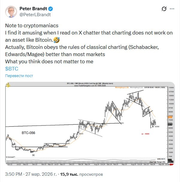 Меня забавляет, когда я читаю в X разговоры о том, что технический анализ не работает на таком активе, как биткоин. 🤣 На самом деле биткоин следует правилам классического теханализа (Шаба́ккер, Эдвардс/Макги) лучше, чем большинство рынков. Что вы думаете, меня не волнует.