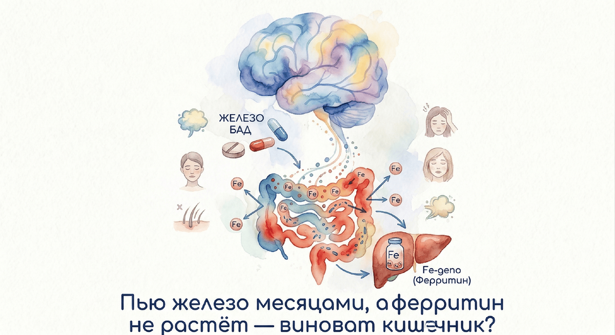 Пью железо месяцами, а ферритин не растёт — виноват кишечник?
