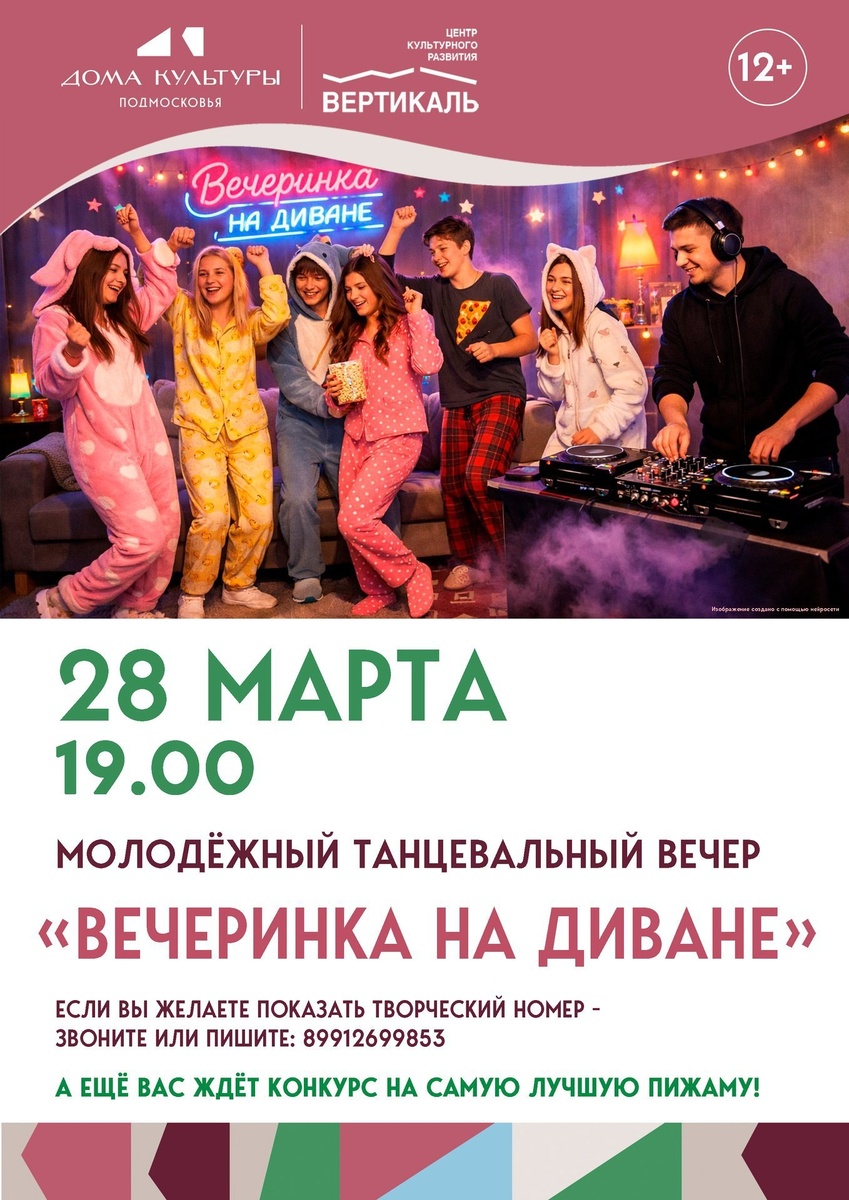 ✨ Танцевальный вечер для молодёжи "Пижамная вечеринка" в Пущино💃 👉Ведущая - Анастасия Зиновкина На дискотеке вас ждут: 🎤 Караоке – покажите свои вокальные таланты! 🏆 Разнообразные конкурсы и интересные задания – почувствуйте дух соревнования! 💃 Дискотека – танцуем под любимые хиты! Не забудьте прийти в пижамах – это сделает атмосферу еще более уютной и веселой! 🚫 Возраст: 12+ 📆 28.03.2026 🕒 19:00 🏢 ЦРК "Вертикаль" г. Пущино 📍 г.о. Серпухов, г. Пущино, проспект Науки, 7 💰 Вход свободный❗️ ⭐Поддержать канал голосом 💰 Канал Вакансии Серпухова ✅ Мероприятия Серпухов https://dzen.ru/id/66f01c6eb4c6fe60c9ca1608 https://vk.ru/serpukhov_events http://dzen.ru/serpukhov_events