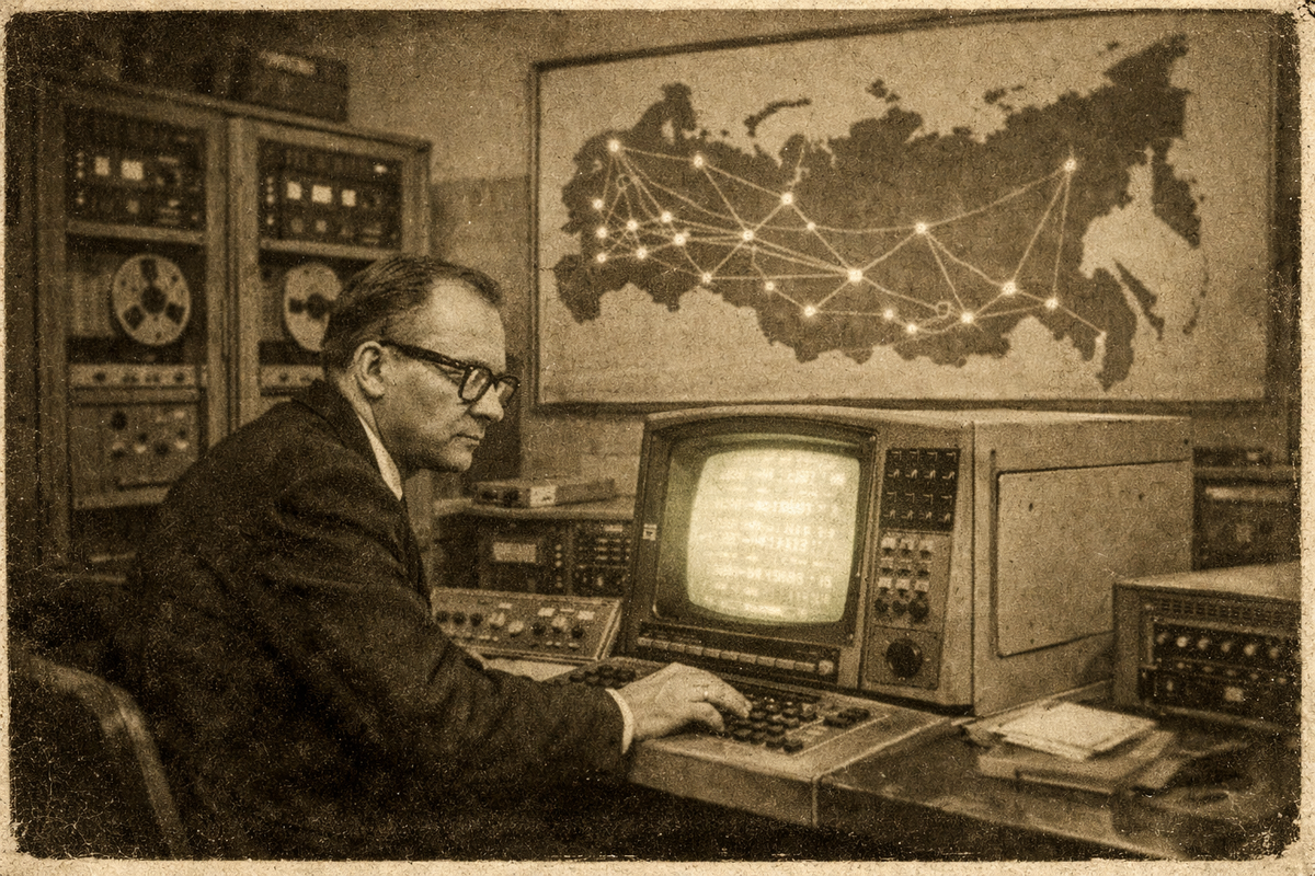 Смысл простой: советская экономика тонет в бумагах. Госплан обрабатывает миллионы показателей вручную. Данные с заводов устаревают раньше, чем доходят до Москвы. Страна управляется вслепую.