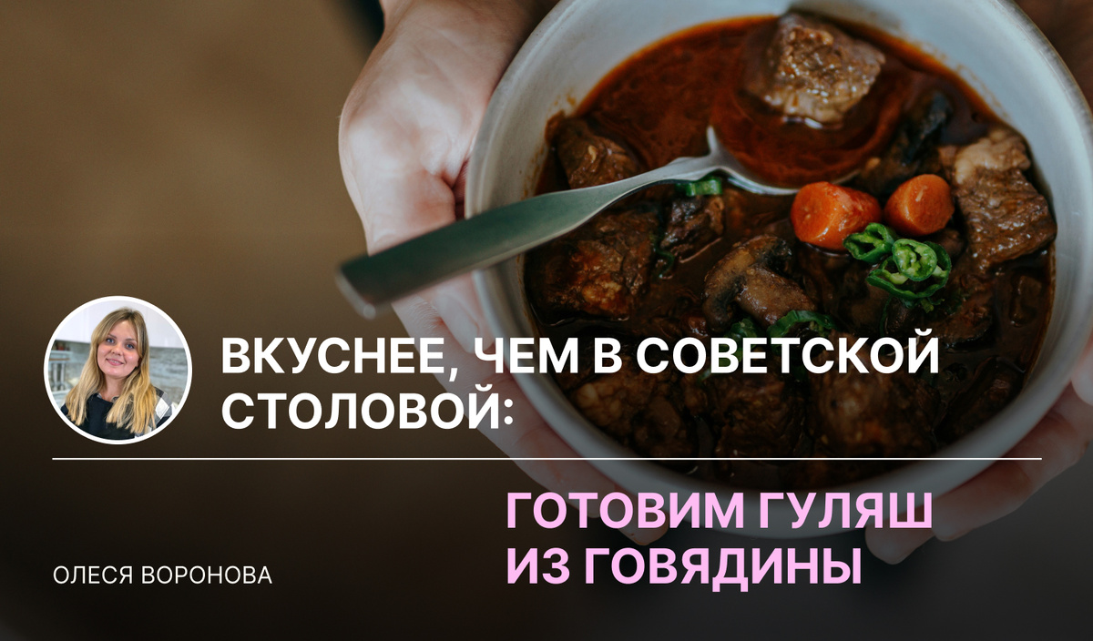 Говяжий гуляш по праву считался одним из любимых блюд посетителей советских столовых. И в этом материале наша резидентка и фудблогер Оксана Воронова раскроет секрет его приготовления. - 600 г филе говядины; - 1 репчатый лук; - 1 столовая ложка томатной пасты; - 1,5 столовых ложки муки; - 1 лавровый лист; - 500-600 мл воды или мясного бульона; - 2-3 столовых ложки растительного масла; - 3-4 горошины черного перца;