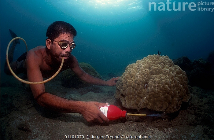 Суть её очень проста: дайвер, обычно молодой и бедный, ныряет к прибрежному коралловому рифу и распыляет над ним концентрированный раствор цианида натрия. После чего ему остаётся лишь ждать, пока морское течение не вынесет парализованных рыбок из своих укрытий.