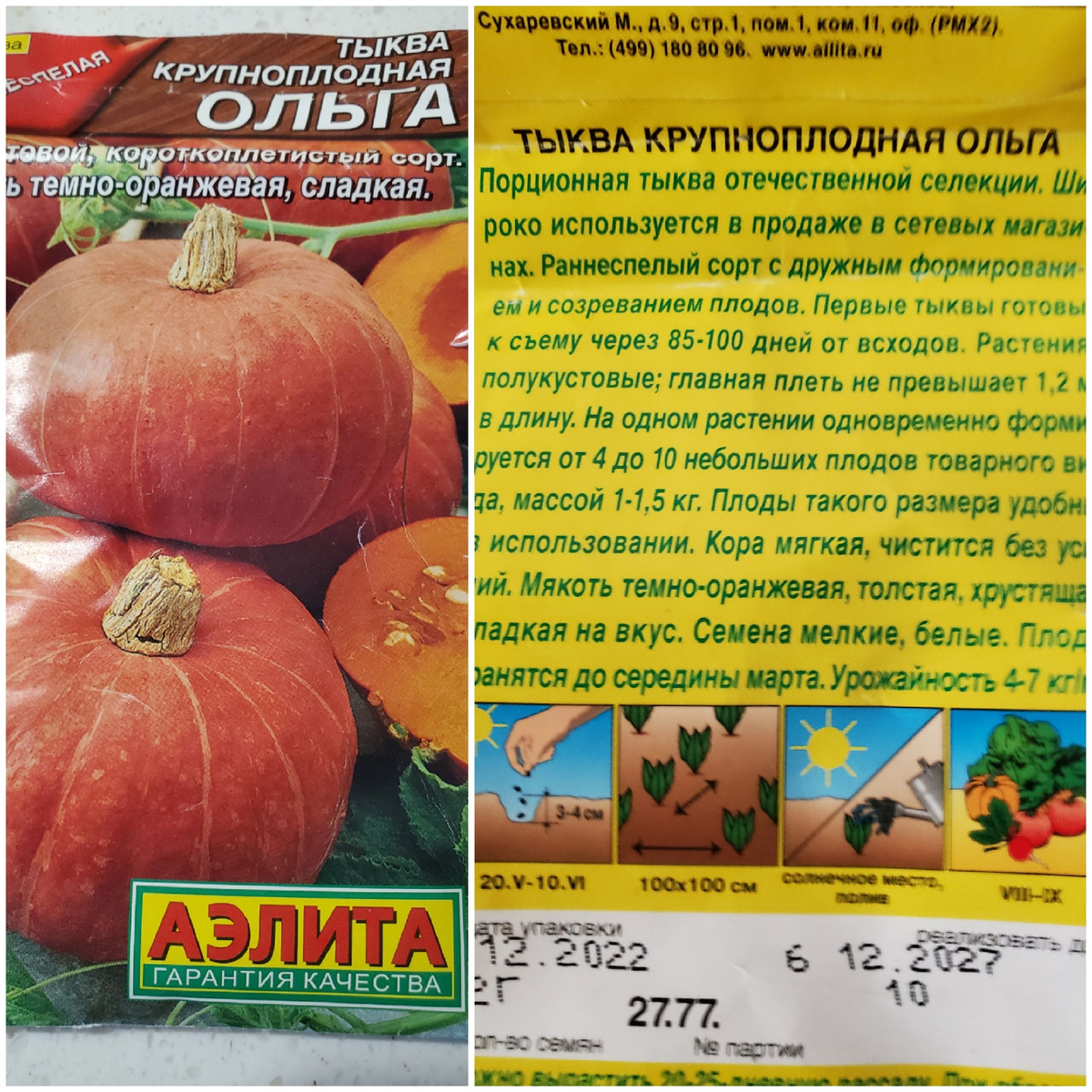 Всех приветствую на своем канале!!! Сегодня 27 марта и я решила приготовить тыкву. Тыквы небольшого размера, как и написано в описании, хотя на пачке заявлено как "Тыква крупноплодная Ольга". Кусты компактные, мякоть солнечно-оранжевого цвета, плотная, не волокнистая, хрустящая, Лежкость, до марта- подтверждаю (в кладовке при постоянной температуре 15 градусов). Для меня из минусов: Плеть была длиной более 3-х метров (не полукустовая); Сахарность тыквы не большая; Аромат не выраженный; Урожайность – 4 тыквы с куста (как и заявлено в описании). В этом году посажу другую тыкву. На сегодня все! Поделитесь в комментариях, какие сорта тыквы вы выращиваете. Ваш опыт и ваши советы могут быть очень полезны читателям!
