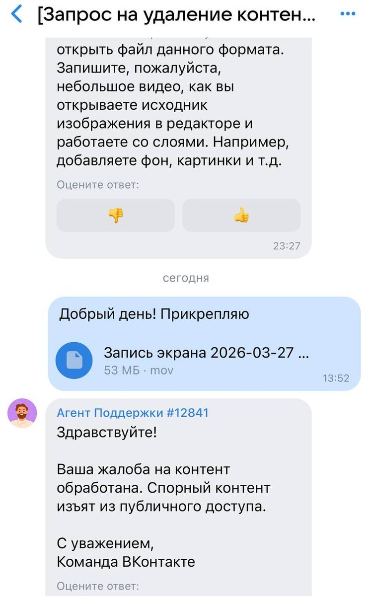 Кстати! Я добилась удаления материалов, администрация в ВК молодцы 👏 а у меня + 1 в копилку опыта