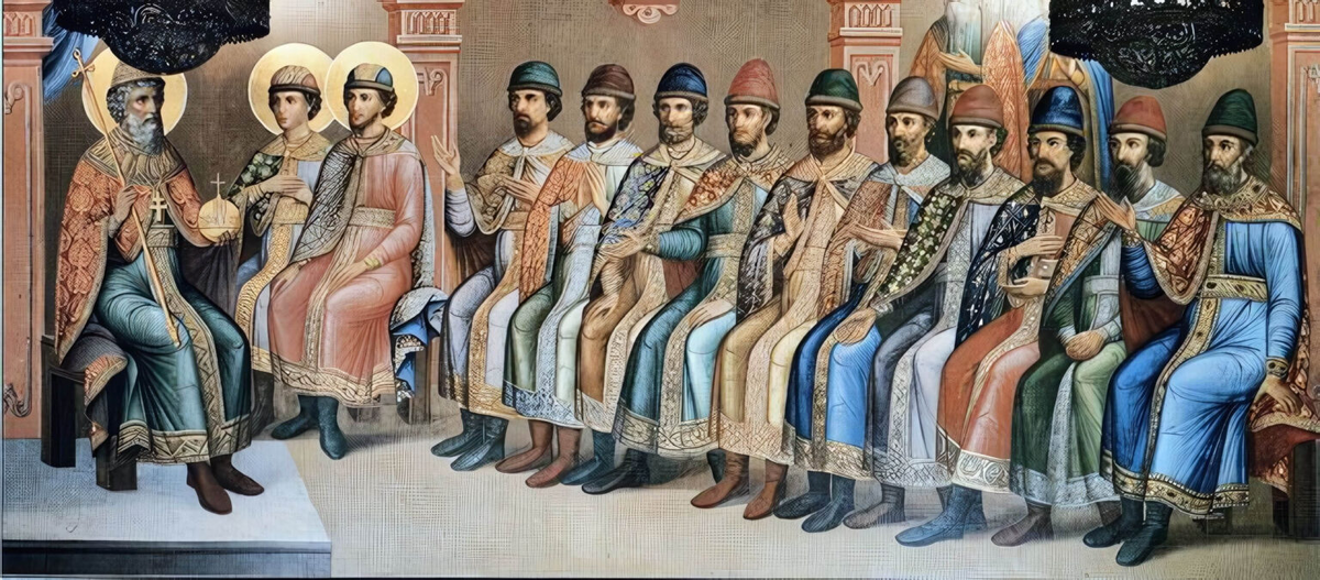 Великий князь Владимир Святославич с сыновьями. Роспись восточной стены Грановитой палаты. 1882. Деталь
