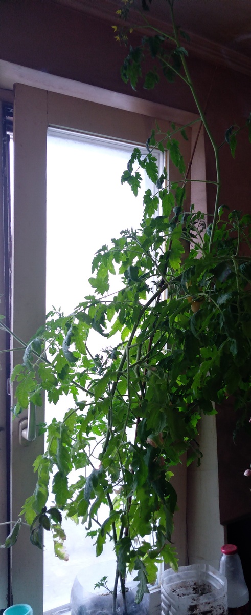 Вомните песню?: " Я спросил у ясеня..... я спросил у тополя...." Теперь все спрашивают у Алисы! :) " и она ответила....." не гневи, дурак :) Конечно, ИИ так не отвечают, но по сути, "мадам" сказала категорическое нет! Если честно, то год назад, я бы с ней согласился. Поскольку даже чудо гидропонные профессиональные растворы требуют замены. Т.е. на 100%, и даже на 80%, ПЭ из них не использует и из просто сливают в унитаз, заменяя новыми. Помните мой маточный томат? Что в конце февраля я кормил сабодельным удобрением с Экофоской, которая после проверки оказалась хлорсодержащим удобрением(хлорид калия, вместо сульфата). Томаты -терпимы к хлорид ионам, в отличие от огурца, потому и не показывали отклонений(а огурец-просто визжал дырками на листьях). Т.к. это маточник, я оставил на растениях по паре кистей чисто из любопытства. Урожай уже созрел к 27.03.26, пусть и скудный. Сам по себе вкус сорта мне не очень, но родит стабильно и много. Сейчас высота растения 120 см, а обхват 60 см. Прищи