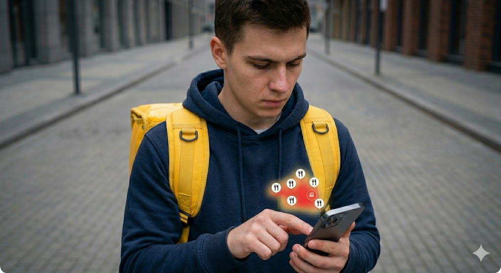- Стратегия для вело/авто: Двигайтесь. Статичный курьер получает меньше заказов, чем тот, кто едет по маршруту мимо ресторанов.