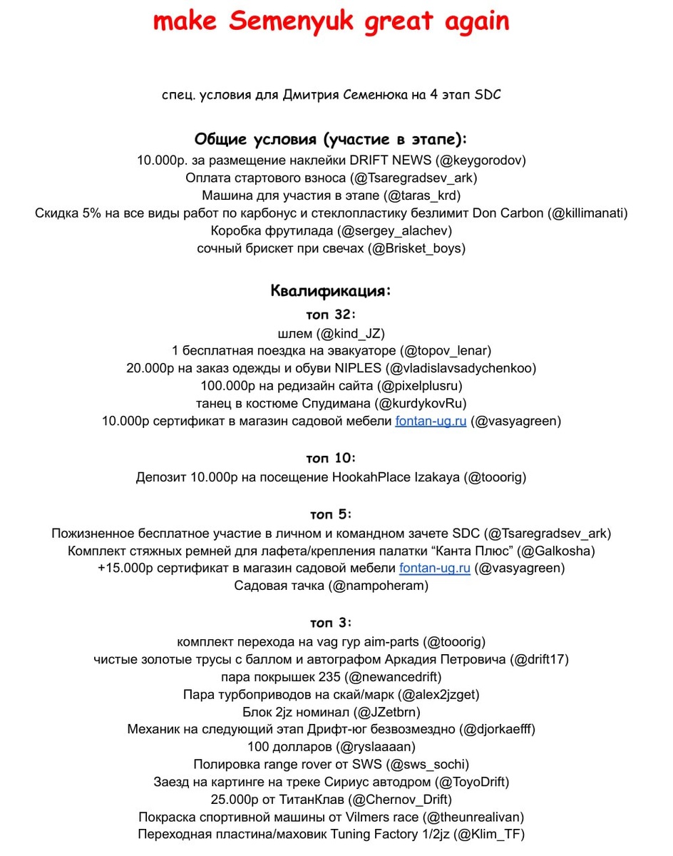 ! Сообщество Systeme Electric Drift Challenge решило замотивировать легенду российского дрифта Дмитрия Семенюка показать результат на финальном этапе невероятным количеством призов: от скидок, услуг, до запчастей, целого двигателя и даже ТРИ автомобиля! Ну а наш логотип будет красоваться на Скайлайне под управлением Дмитрия Автор идеи - Леонид Морозов Это будет легендарно! 🌟 DRIFTNEWS | #TAMASHI