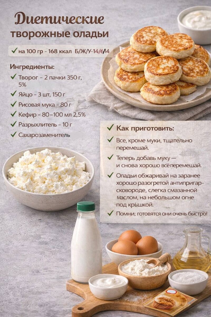 Диетические творожные оладьи, быстро, просто и очень вкусно 😋