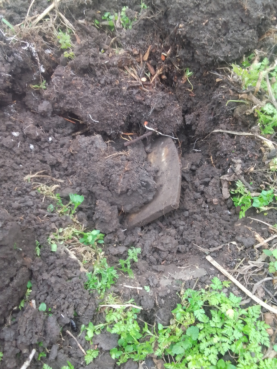 Обломок лопаты, очень похожей на армейскую сапëрную времён войны.