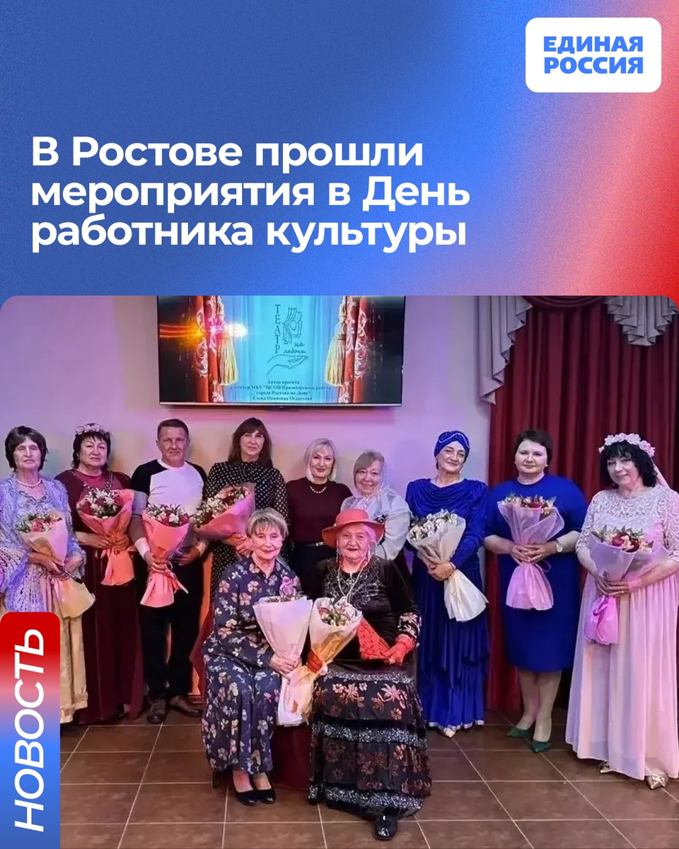 В библиотеках, музеях и театрах города единороссы провели спектакли, концерты, лекции и встречи с деятелями культуры. 👍 Отдельное внимание уделили встречам со школьниками. Им читали лекции об истории Донского края, а также о легендарном городском голове Андрее Байкове. «Поддержка культуры - один из ключевых пунктов народной программы партии. Благодаря проекту «Культура малой Родины» наши театры получают новые возможности для развития и создания современных постановок», - рассказал депутат Единой России Раджив Мирзалиев.
