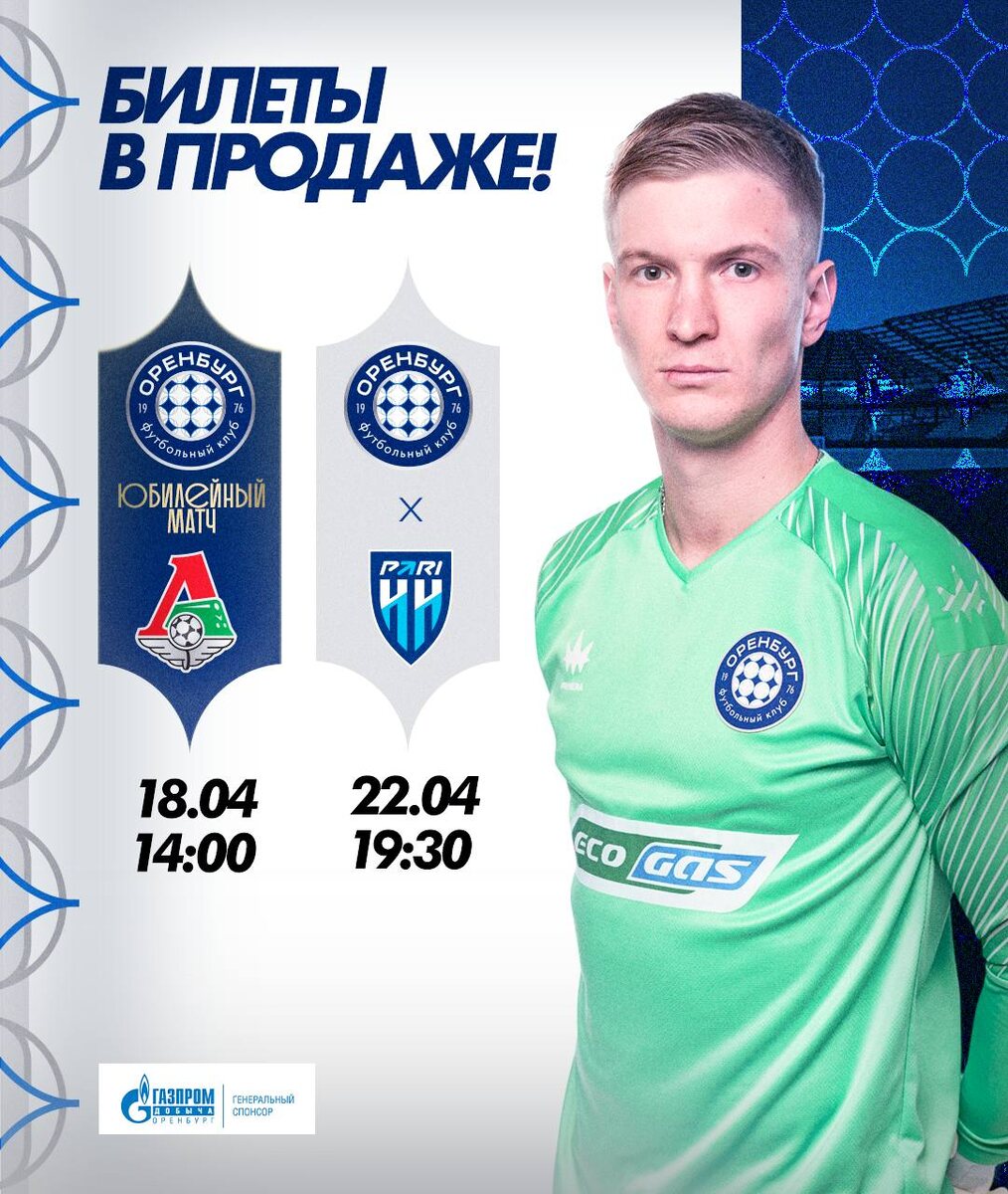 ⚡️ Сине-белые, стартовала онлайн-продажа билетов на ближайшие домашние матчи ФК «Оренбург» против «Локомотива» и «Пари Нижнего Новгорода». 1️⃣8️⃣.0️⃣4️⃣ | ⚽️ х ❤️ | БИЛЕТЫ 2️⃣2️⃣.0️⃣4️⃣ | ⚽️ х 💙 | БИЛЕТЫ #ФКОренбург