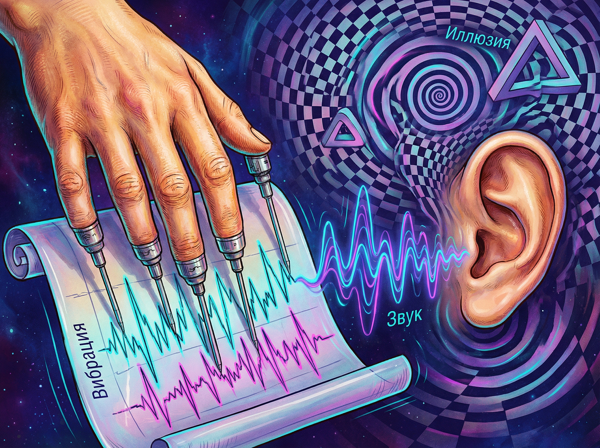 Или вот ещё феномен: во время анестезии некоторые пациенты всё ещё могут ощущать вибрации, особенно в области запястья. Местные анестетики блокируют сигналы от большинства рецепторов, но некоторые низкочастотные вибрации всё равно достигают мозга. Это явление до сих пор не до конца изучено, но оно лишний раз подтверждает: кожа и уши говорят с мозгом на одном языке, языке вибраций.