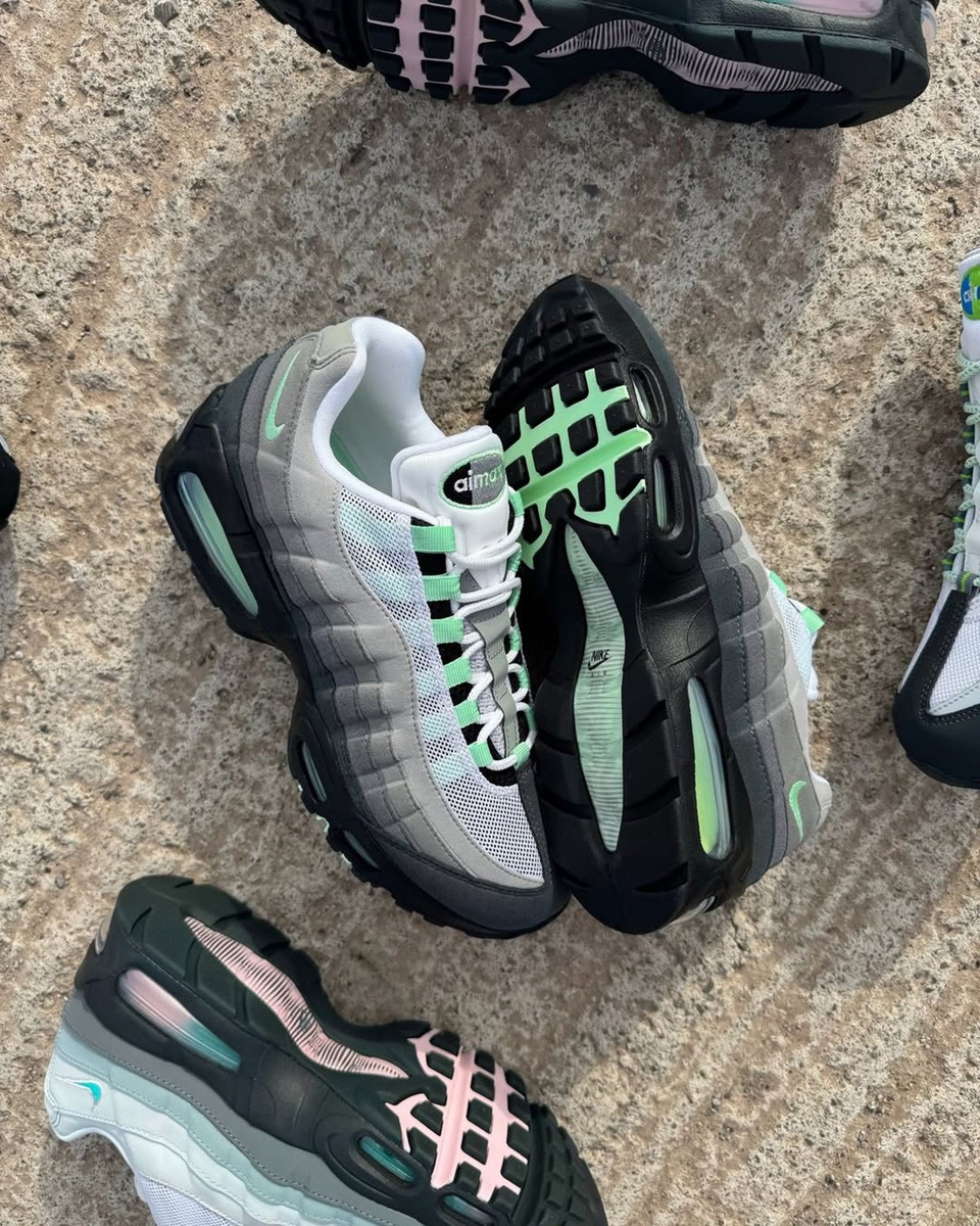 » JD Sports представила новые расцветки Nike Air Max 95 «Big Bubble» на лето 2026 года. После активного развития модели в 2025-м и в рамках Air Max Day 2026, Nike продолжает расширять линейку: за последний год вышли многие варианты «серой градиентной» расцветки, а теперь силуэт возвращается к архивным решениям. JD Sports UK, уже известная эксклюзивными версиями AM95, показала несколько предстоящих цветовых решений. Среди них — «Green Apple» и «Pink Foam» (уже анонсированные ранее), «Apple Pink» (или «Miami Vice»), «Mint» (первый релиз с 2019 года), а также спортивная синяя и жёлтая версия «Royal Blue». Также Nike Air Max 90 получит собственную расцветку «Pink Foam». Официальные изображения некоторых пар уже появились, но дата релиза пока не уточняется: часть информации указывает на эксклюзивы JD Sports, другая — на более широкий выпуск через Nike. Подробности станут известны ближе к летнему окну 2026 года. 👟