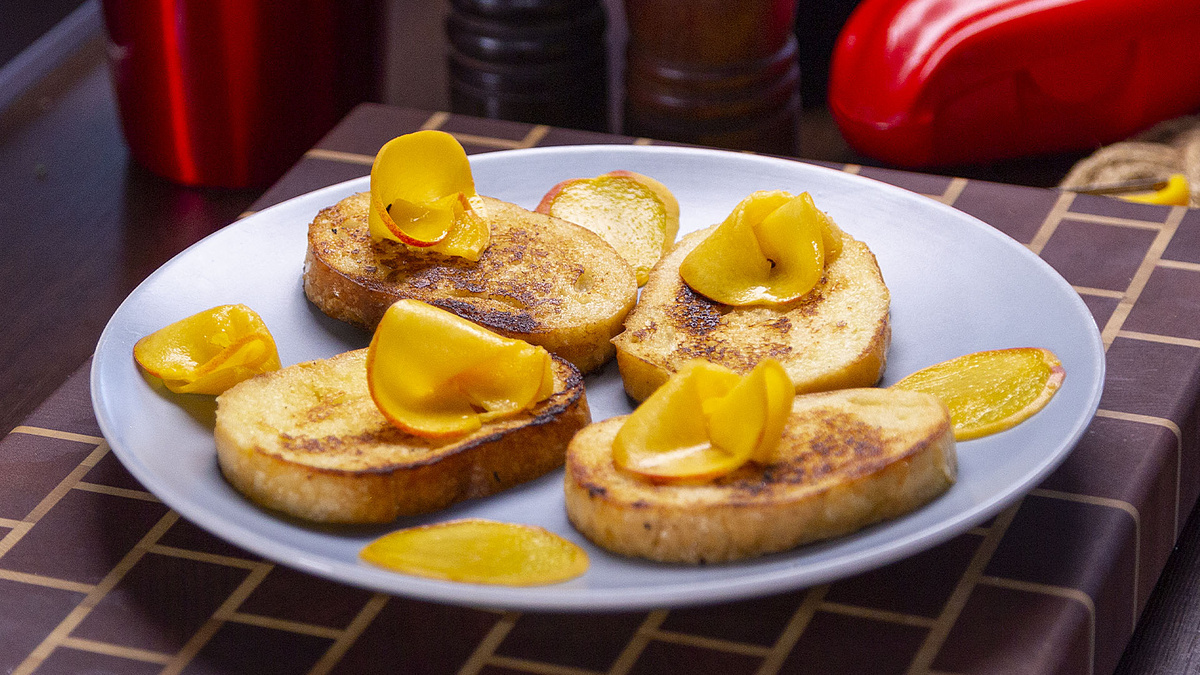 Ингредиенты: • Батон • Сливочное масло • Сахар • Соль • Яйца • Молоко • Персик или яблоко Приготовление: Смешать яйцо, сахар, молоко и щепотку соли. Обмакнуть кусочки батона и обжарить на сливочном масле с двух сторон. Выложить на бумажное полотенце, затем на тарелку. Подавать с тонкими слайсами персика или яблока. Приятного аппетита! Шеф-повар Василий Емельяненко ❗️Подписаться ❗️ (https://t.me/+WiGqBwr7wQQxNGUy) Подписаться в MAX (https://max.ru/chefvasiliyemelyanenko)