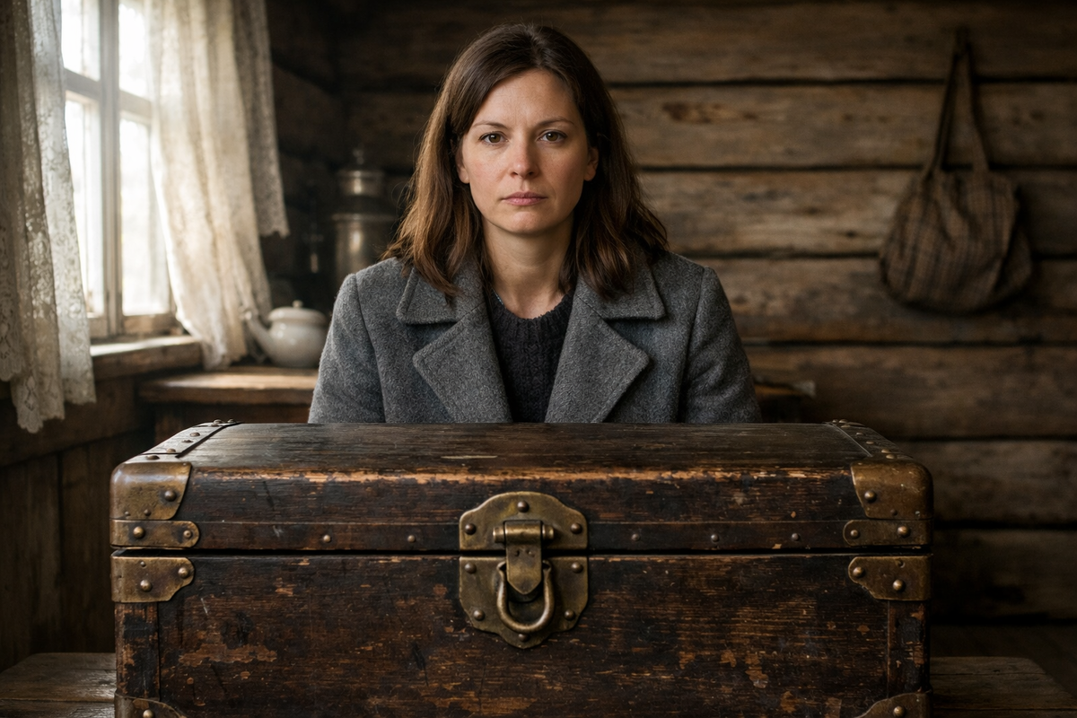 В доме было тихо. Не по-доброму тихо, а так, что слышно, как на кухне остывает чайник и как в сенях щёлкает старая защёлка, если дверь чуть повело от сырости. На зеркале висела белая простыня. Подоконник был пуст. Даже герань кто-то уже унёс. И только сундук остался на самом виду, тёмный, широкий, с медными уголками, притёртыми до мягкого, глухого блеска.