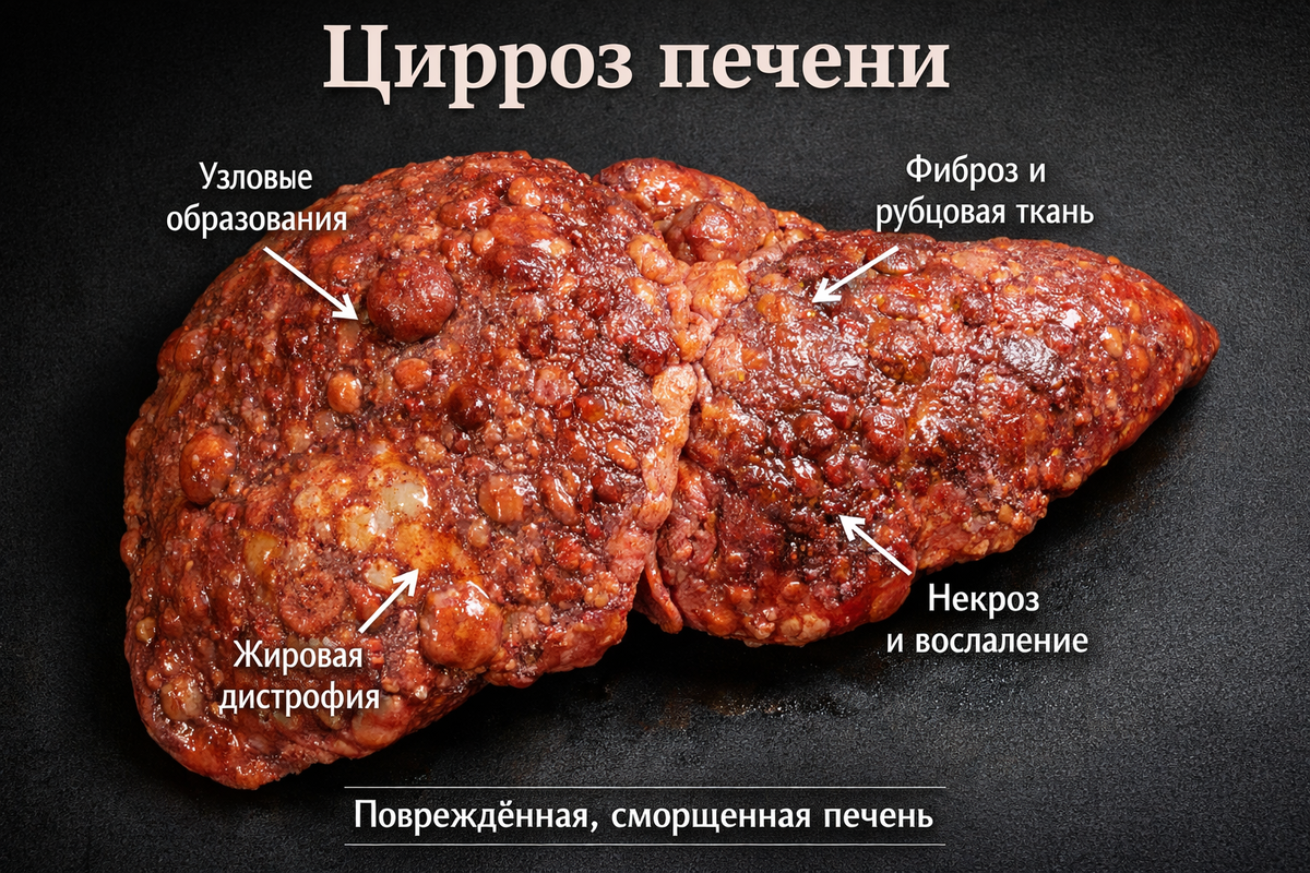 · Опасность: Это «звоночек». Если человек продолжает пить, процесс быстро переходит в цирроз.
