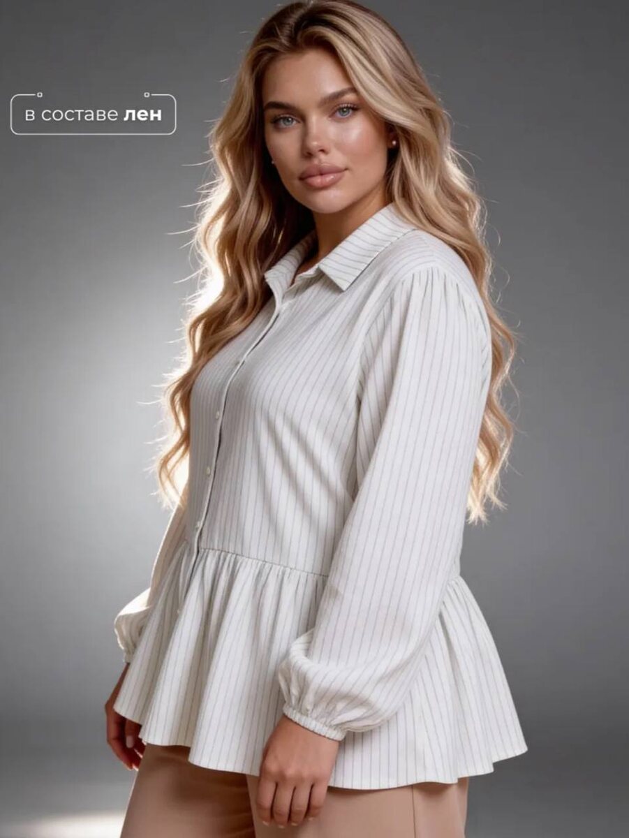 🤍 За счёт баски аккуратно скрывает животик и формирует более женственный силуэт. Плюс по составу очень приятная: 40% хлопка и 30% льна, значит будет дышать и комфортно носиться. И ещё мне понравилась вертикальная полоска — она дополнительно вытягивает силуэт. Можно и в офис и на прогулку. Размерная сетка до 64, что тоже большой плюс. В общем, очень удачная находка — ссылку оставляю 🤍