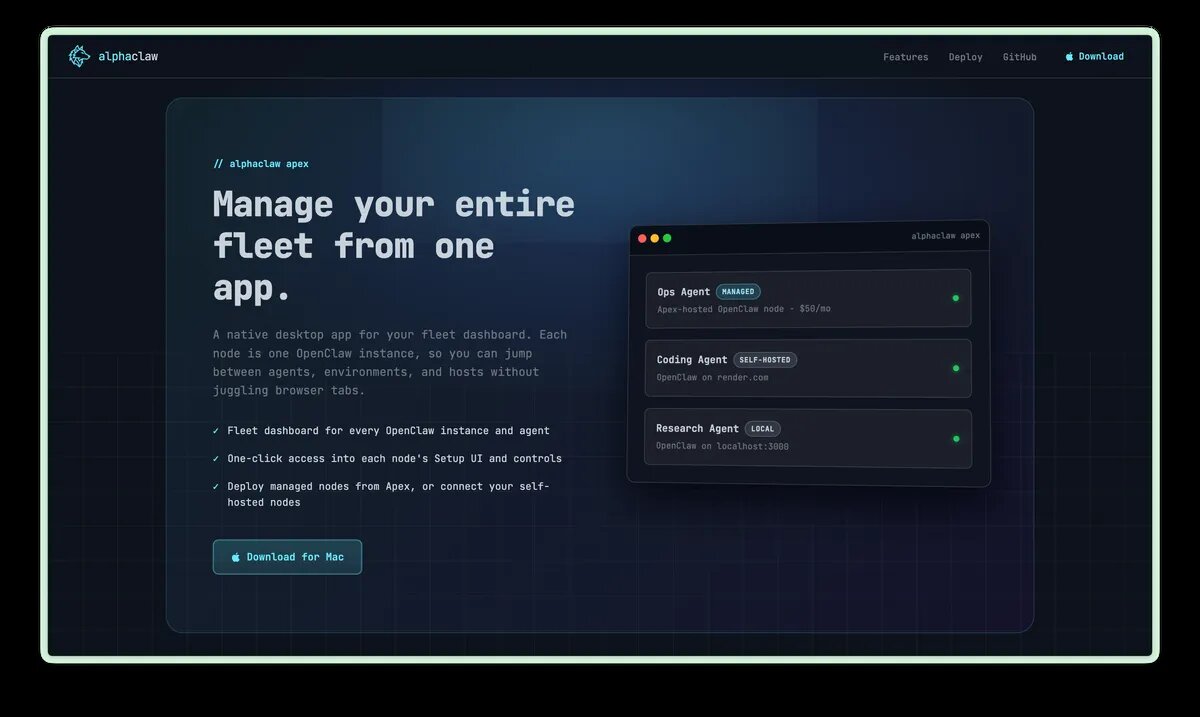 Вышло нативное Mac-приложение AlphaClaw Apex для управления несколькими инстансами OpenClaw на VPS из единого дашборда. Разбираюсь, почему это важно. Если вы работаете с OpenClaw на VPS — вы знаете, как это выглядит. SSH, терминал, nano, конфиги. Всё работает, но каждый раз, когда нужно что-то проверить или обновить, начинается маленькое приключение в командной строке. Теперь появился инструмент, который это меняет. AlphaClaw Apex — нативное Mac-приложение для управления несколькими инстансами OpenClaw с одного дашборда. GitHub: https://github.com/chrysb/alphaclaw Apex решает конкретную задачу: вместо того чтобы подключаться по SSH к каждому серверу отдельно, вы видите все свои OpenClaw-инстансы в одном окне. Деплой на Hetzner VPS — в один клик. Мониторинг, конфиги, обновления, расходы и состояние — всё из единого интерфейса. Звучит просто, но именно такие вещи экономят часы каждую неделю. В первую очередь — тем, кто настраивает OpenClaw для клиентов как сервис. Когда у вас один инстан