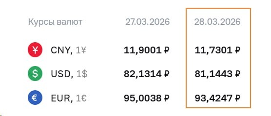 Центральный банк России установил официальные курсы валют на выходные 26-27 марта 2026 года. Доллар США поднялся до 82,13 рубля (+1,75%), а евро — до 95,00 рубля (+1,27%) по сравнению с пятницей 26 марта. Рост курса иностранных валют обусловлен давлением на рубль в условиях санкций и волатильности внешних рынков. Для инвесторов это сигнал о возможном удорожании импортных товаров и товаров для вложений в валюте в ближайшие дни. Также рост курсов подстегнет спрос на валютные активы и подтолкнет игроков к фиксации прибыли в рублях. Следим за динамикой курсов и рынком облигаций и акций. Держим кэш или шортим рубль? #новости #БезПафосаФинансы #валюта #ЦБРФ ##БПФ_Day
