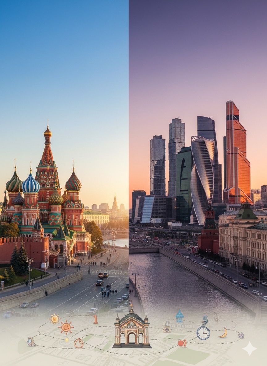 - Когда лучше всего приехать в Москву на 5 дней? Май–июнь и август–сентябрь — оптимальное время: тепло, но без изнуряющего зноя, парки в полном цвету и праздничная атмосфера.