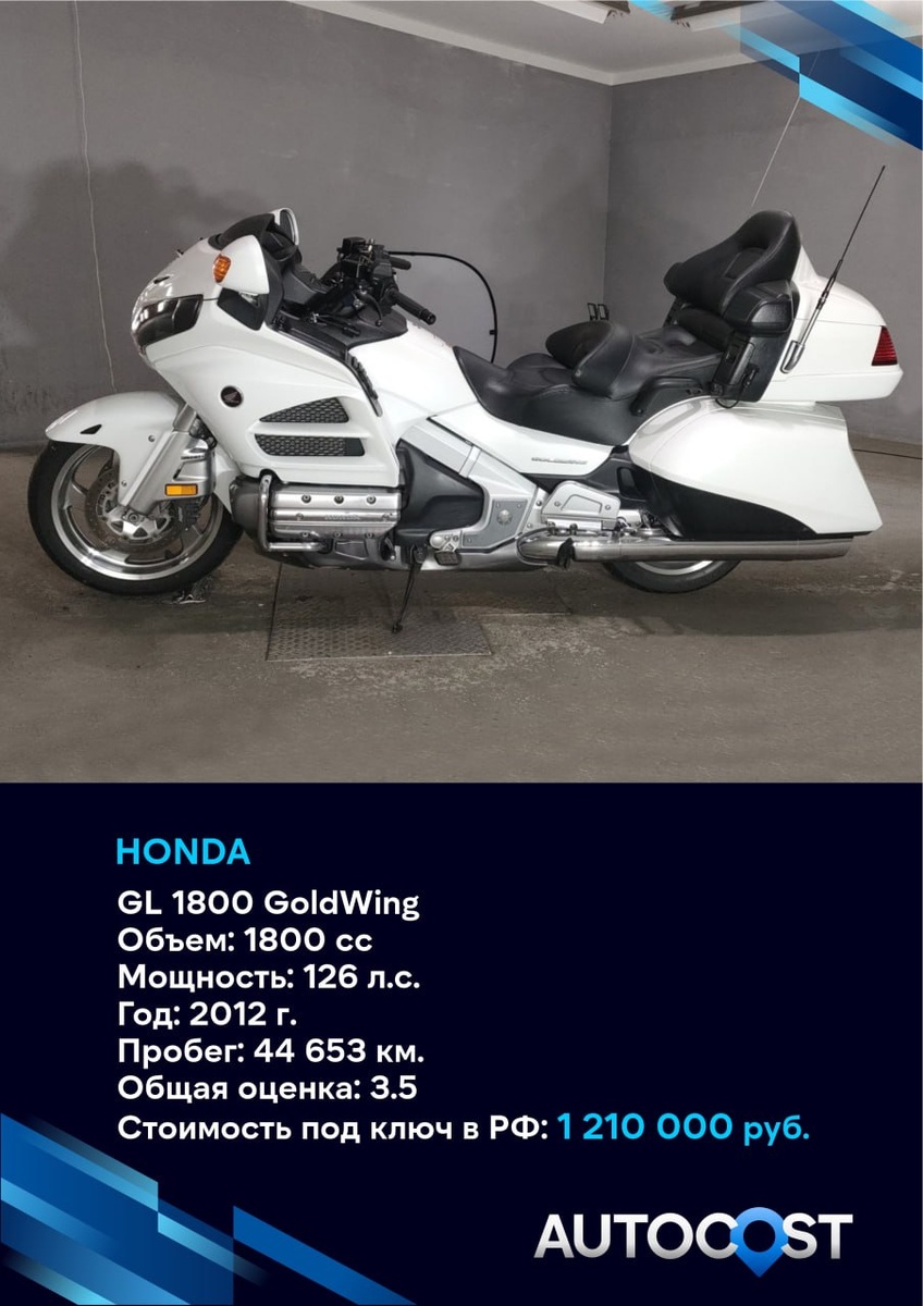 Мотоциклы доступные на японских аукционах: HARLEY-DAVIDSON FXDL1580 Объем: 1580 сс Мощность: 67 л.с. Год: 2013 Пробег: 38 891 Оценка общая: 5 🔷Ориентировочная стоимость под ключ в РФ: ≈680 000 руб. DUCATI 749S Объем: 749 сс Мощность: 116 л.с. Год: 2004 Пробег: 29 852 км. Оценка общая: 4 🔷Ориентировочная стоимость под ключ в РФ: ≈660 000 руб. KAWASAKI NINJA 650 A Объем: 650 сс Мощность: 71 л.с. Год: 2025 г. Пробег: 169 км Общая оценка: 7 🔷Ориентировочная стоимость под ключ в РФ: ≈730 000 руб. KTM 1290 SUPERDUKE R Объем: 1290 сс Мощность: 177 л.с. Год: 2019 г. Пробег: 9327 км Общая оценка: 6 🔷Ориентировочная стоимость под ключ в РФ: ≈780 000 руб. HONDA GL 1800 GoldWing Объем: 1800 сс Мощность: 126 л.с. Год: 2012 г. Пробег: 44 653 км Общая оценка: 3.5 🔷Ориентировочная стоимость под ключ в РФ: ≈1 210 000 руб. HARLEY-DAVIDSON FLHTC 1580 Electra Glide Classic Объем: 1580 сс Мощность: 75 л.с. Год: 2011 г. Пробег: 45 161 км Общая оценка: 5 🔷Ориентировочная стоимость под ключ в РФ: