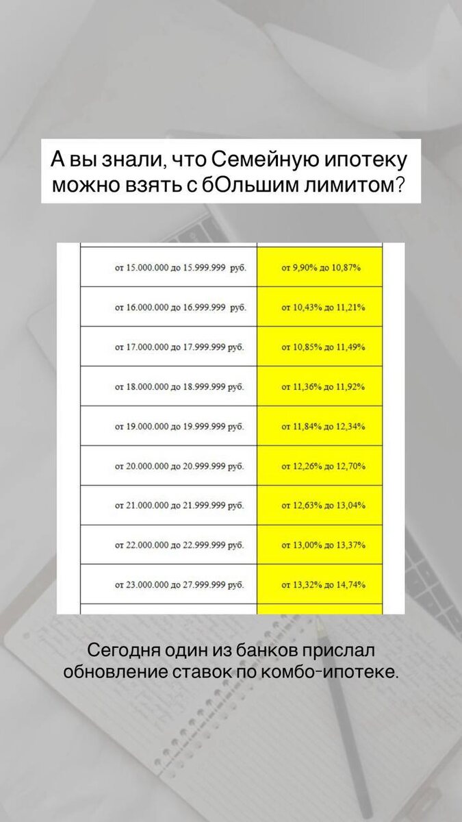 ! Для тех заёмщиков, кому не хватает кредитного лимита 12 млн, банки могут увеличивать кредитный лимит под средневзвешенной ставке для покупки новостроя на первичном рынке. 📲 8-926-606-06-85 Телефон кому нужно одобрение ипотеки и подбор объекта недвижимости.