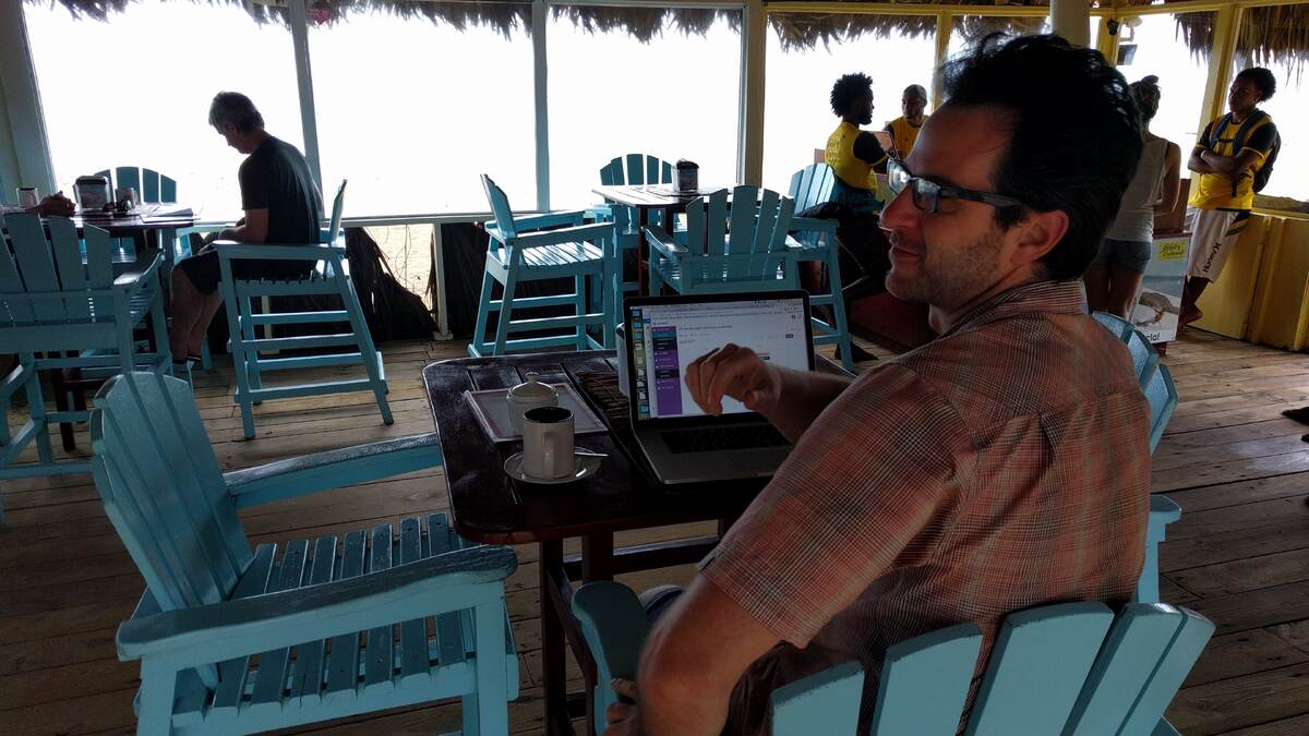 Я был там с партнёршей и нашими детьми. У них были весенние каникулы. Я был там, чтобы заниматься кайтсёрфингом. На фото не видно, потому что оно выцвело, но океан прямо перед окнами. Технически я тогда был на "полной" занятости, хотя не уверен, что когда-либо говорил кому-то из коллег, где именно я буду находиться в тот или иной момент.