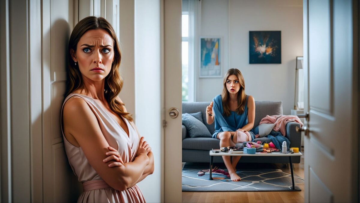 В их гостиной, где еще вчера стоял строгий порядок, теперь царил живописный хаос. На диване валялась раскрытая сумка с косметикой, на журнальном столике красовались полупустая чашка кофе и тарелка с недоеденными бутербродами, а на полу небрежной горкой лежали чьи-то джинсы и свитер.