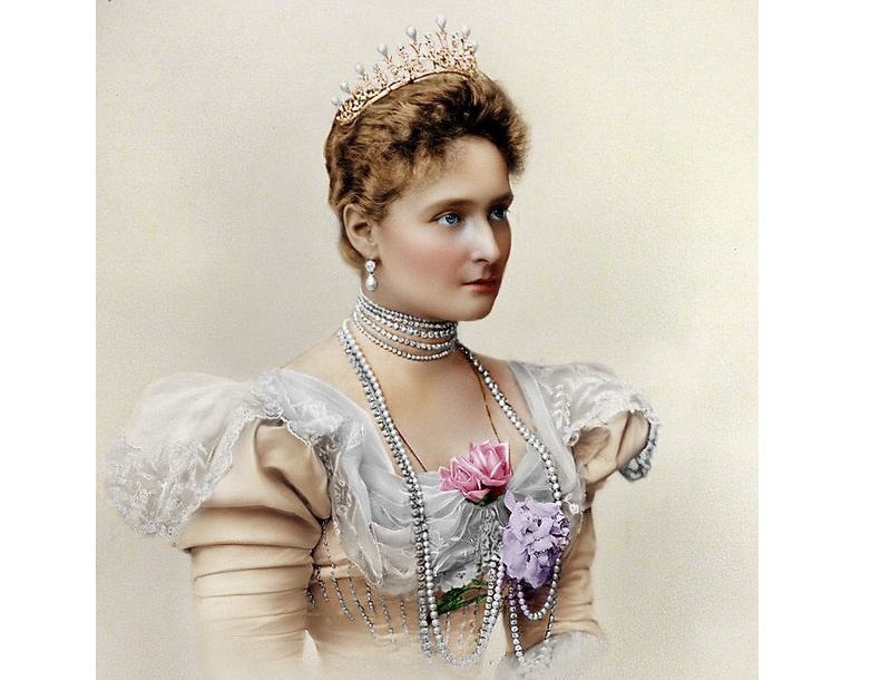 Императрица из личных средств оплатила 5-й ряд (56 штук за 11 тысяч 462 рубля), а ее муж - остальное. И кстати, покупка этого ожерелья - решение Николая II. Императрицу с 1895 по 1901 год так и не смогли убедить, что лучше сразу целое украшение приобретать. Министр Двора во время очередной беременности царицы смог "достучаться" до разума ее мужа. Покупка ниток жемчуга - его решение.