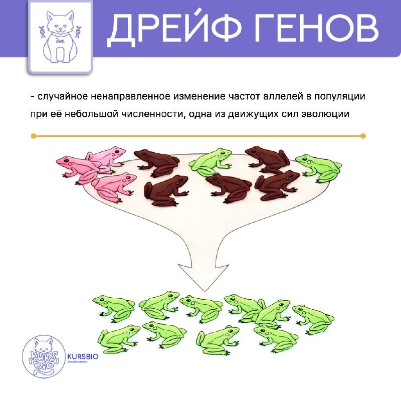 Дрейф генов - одна из движущих сил эволюции, которую спрашивают кажды год Нужно также знать два эффекта: • Эффект бутылочного горлышка • Эффект основателя 📌 Про оба расписал подробно - сохраняй себе, чтобы не потерять