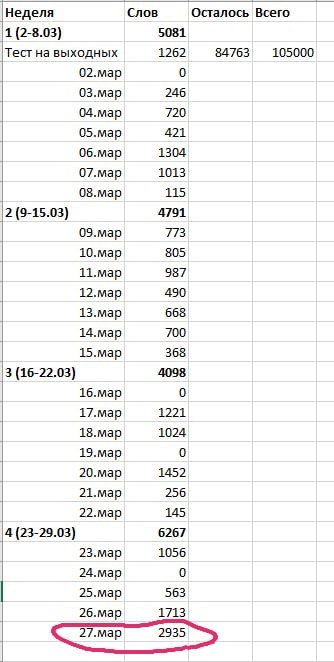 Вот это я понимаю поработала. А то я уж думала, что так и буду ползти улиткой по этой книге. Не сглазить бы. А вы как ведете учет, когда переводите книгу? Вручную в блокнотике? В файлике эксель? Есть специальные чеклисты?