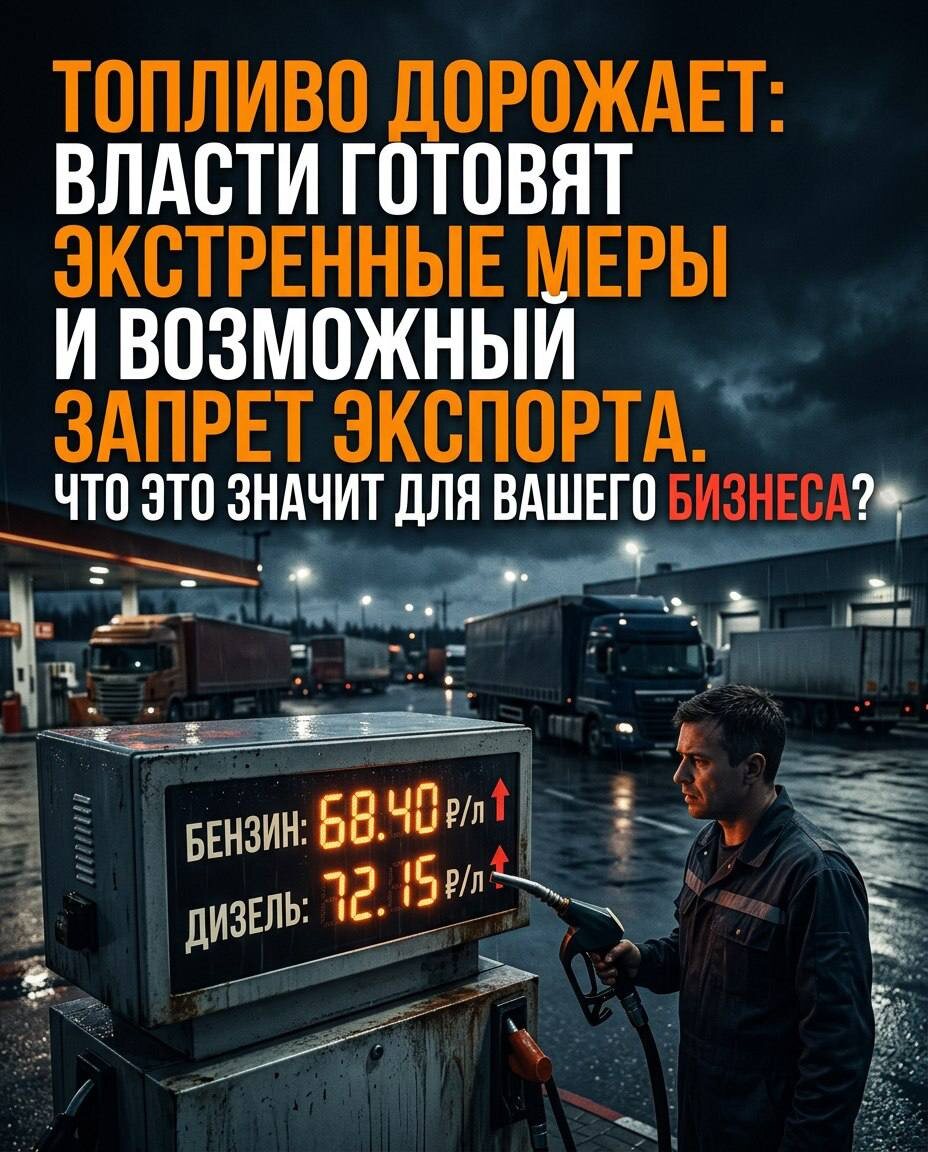 Что это значит для вашего бизнеса? Цены на бензин снова ползут вверх. 📈 С 17 по 23 марта топливо подорожало на 0,36%, а с начала года — уже на 2,77%. Это почти догнало общую инфляцию в 2,78%. И это только начало. Что происходит? 1⃣ Росстат фиксирует рост цен в 71 регионе. В Крыму и ЯНАО — на 0,9% за неделю. В Москве и Питере — на 0,4%. 2⃣ АИ-92 прибавил 24 копейки (до 66,55 руб/литр), АИ-95 — 23 копейки (до 63,02 руб/литр), АИ-98 — 24 копейки (до 92,36 руб/литр). Дизель — плюс 18 копеек (до 77,60 руб/литр). 3⃣ Вице-премьер Александр Новак бьет тревогу: нужны срочные меры для стабилизации рынка. Мировые цены на нефтепродукты растут, и это влияет на нас. 4⃣ Минэнерго не исключает запрет на экспорт бензина. Если баланс спроса и предложения нарушится, решение примут моментально. Возможно, даже превентивно. Почему это критично для вашего бизнеса? Любой рост цен на топливо — это прямые убытки для компаний с автопарком. Грузоперевозки, логистика, спецтехника — все это сразу дорожает.