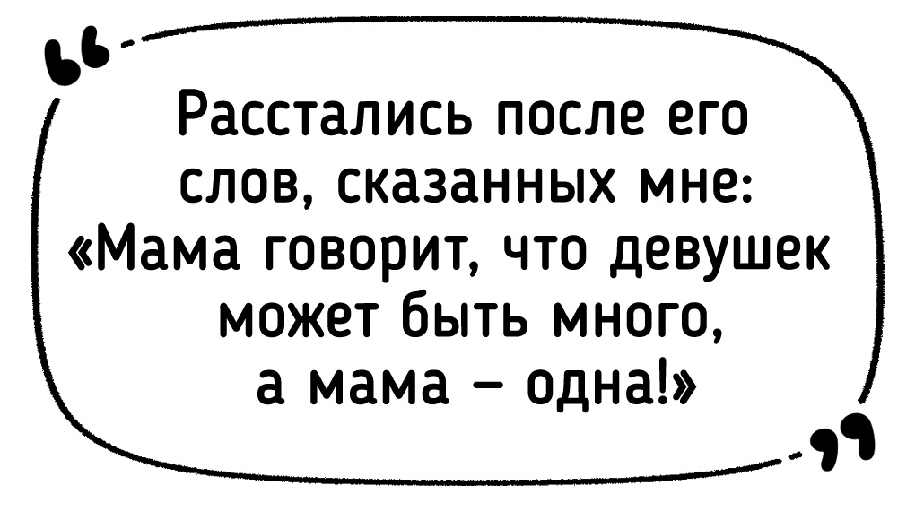 Расстались после его слов, сказанных мне: «Мама говорит, что девушек может быть много, а мама — одна!» © Ромашка Аптечная / Dzen