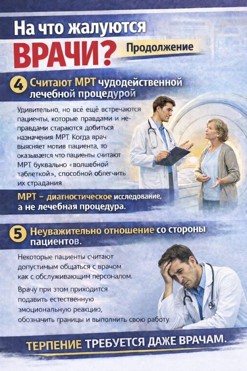 Удивительно, но всё ещё встречаются пациенты, которые правдами и неправдами стараются добиться назначения МРТ. Когда врач выясняет мотив пациента, то оказывается что пациенты считают МРТ буквально "волшебной таблеткой", способной облегчить их страдания.