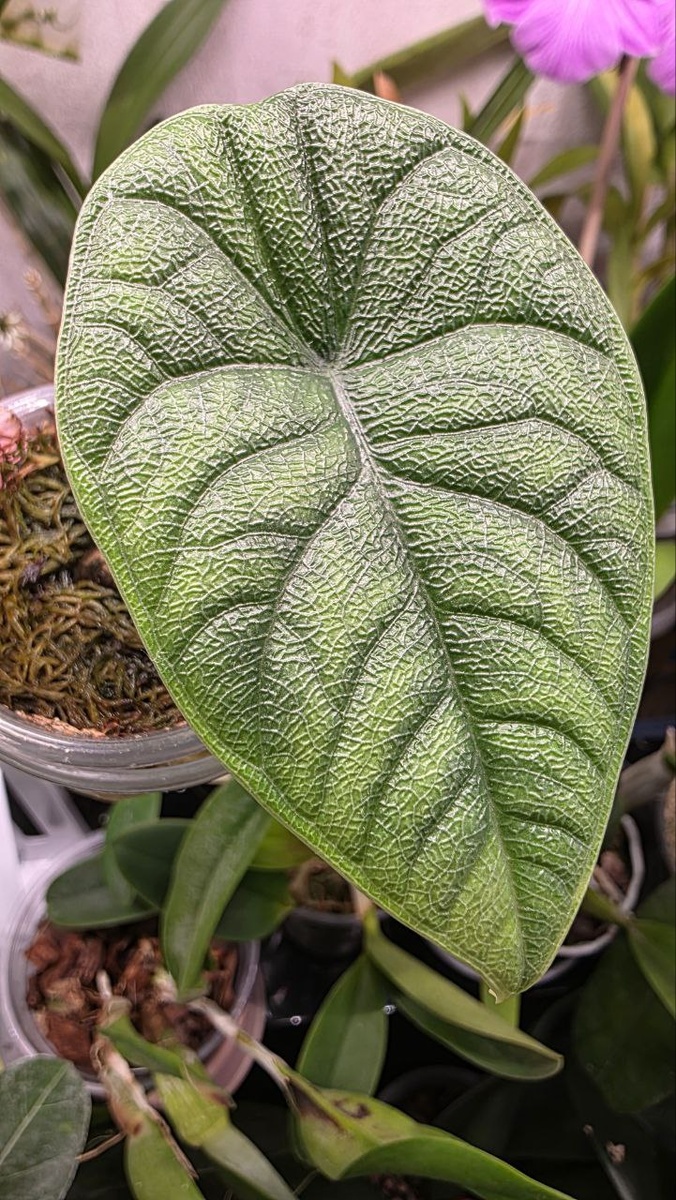 Год был бы в июле, если я правильно помню. Потрясающая текстура. Вот такой я чУдный алоказиевод) В итоге, спустя кучу попыток и способов, все-все мои клубни начали весело прорастать только одним макаром - в большом живом контейнере со мхом под пленкой и лампой. И никаких проветриваний. При чем абсолютно все равно во мхе они или в кокосе с перлитом. Про минералку не спрашивайте, я с ней до сих пор на такие "Вы", что аж с реверансами и глазками в пол)