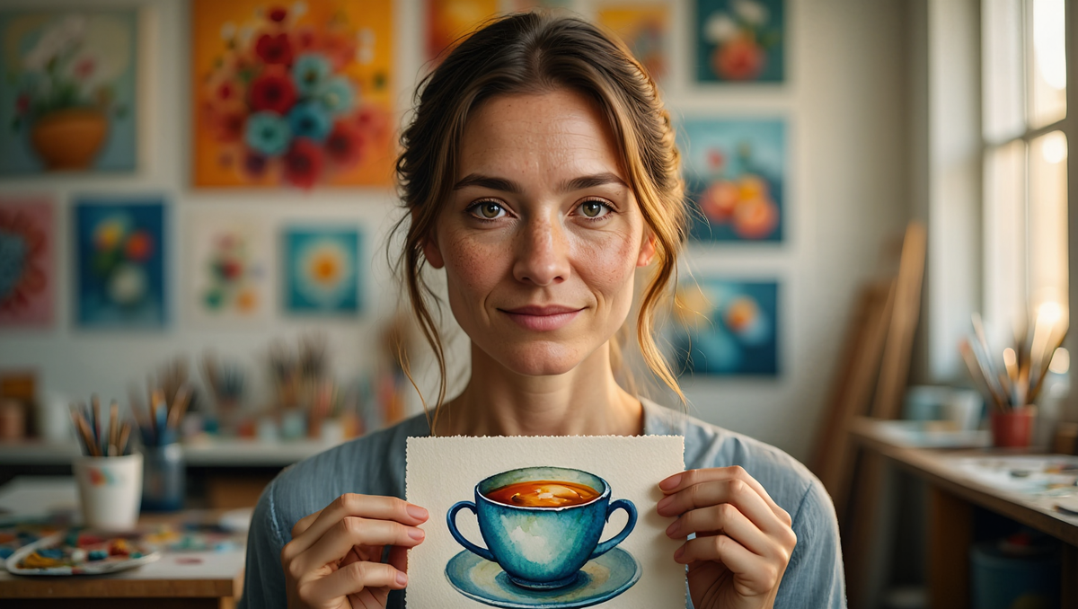 Наталья сидела перед чистым листом минут пять. Потом взяла синий и нарисовала чашку. Кривую, немного смешную, но — чашку.