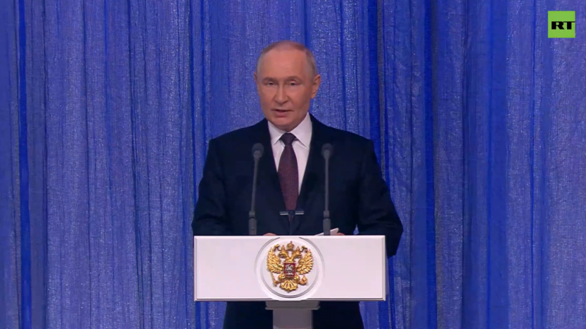 Президент России Владимир Путин принял участие в торжественном вечере, посвящённом Дню войск национальной гвардии. RT вёл трансляцию.