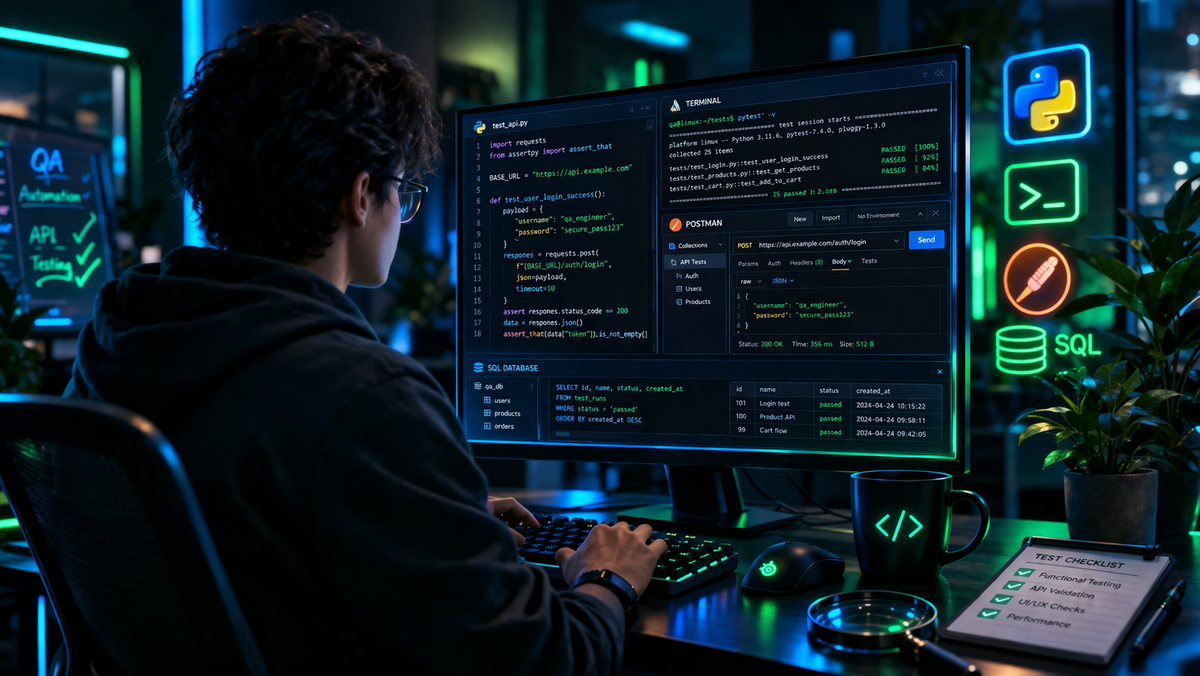 Открываю hh.ru в начале недели, чтобы посмотреть, что сейчас просят от QA. И понимаю: если вы до сих пор считаете, что ручное тестирование — это только «потыкать кнопки и написать баг-репорт», вы рискуете остаться за бортом. За последние два месяца я проанализировал десятки вакансий. И тренд 2026 года очевиден: даже в «ручных» позициях работодатели хотят видеть технический стек. Сегодня разберу одну свежую вакансию от 25 марта, покажу, что там требуют на самом деле, и объясню, почему это не приговор, а маршрут развития. Вот вакансия, которая меня зацепила. Называется «QA manual (backend)», компания из Москвы, зарплата от 120 000 ₽ на руки . Казалось бы, «manual» — значит, кода не нужно. Открываю требования и вижу: Обязательные навыки: Будет плюсом (читай: без этого не возьмут, если есть конкурент): Что мы видим? Даже на позицию с пометкой «manual» работодатель требует: Я решил не ограничиваться одним примером. Вот ещё одна свежая вакансия — QA Manual (Indev) в YADRO (разработка базовых