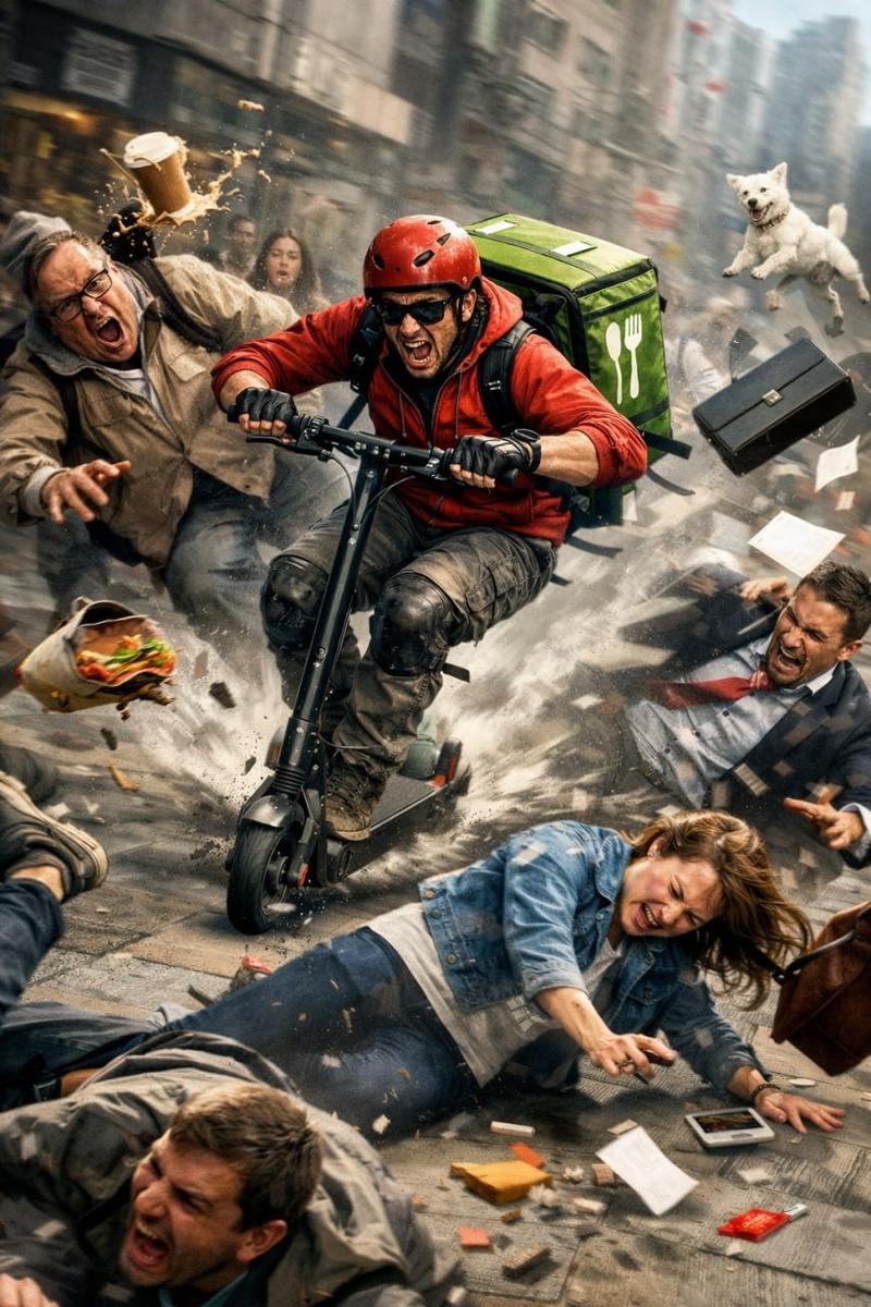 🎣 Тротуар больше не безопасное место — это дорога без правил, только уже у подъезда. И самое тревожное: скорость там теперь как у машины, а ответственность — как у пешехода. 🥩 История знакомая до дрожи: идёшь, думаешь о своём, и вдруг мимо пролетает человек на колесе — не человек даже, а снаряд. 60 км/ч на тротуаре — это уже не транспорт, это кинетическая энергия в поиске жертвы. Чем быстрее доставка — тем дешевле чужая безопасность. Доставщики гонят, потому что платят за скорость. Пользователи — потому что «можно». Контроля почти нет, а последствия — есть: травмы, внутренние разрывы, и иногда — финал без возврата. И да, это не редкость. Это уже система. 🧠 Смотрите, какая штука. Это классический конфликт стимулов — в экономике его называют принцип агентских издержек: когда тот, кто действует (курьер), не несёт полной цены за последствия, а тот, кто платит (сервис/клиент), не видит риска. По-человечески: один зарабатывает за скорость, другой платит здоровьем за столкновение