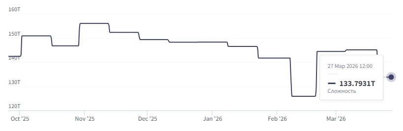 РФ уверенно закрепилась на втором месте по доле мирового хешрейта – 17%, уступая только США (38%), согласно отчету CoinShares за Q1 2026. Расклад сил выглядит так: Вместе: ~68% всего мирового майнинга Другие страны: ТОП-10 стран контролируют 82% глобального хешрейта. Несмотря на прогнозы скептиков, РФ остается ключевым игроком в индустрии, даже несмотря на легализацию и новые законы. Сложность майнинга снизилась на 7,76%: до 133,79 трлн, что стало одним из крупнейших падений за последнее время. Для сравнения: в феврале падение оказалось еще сильнее – более 11% Что это дало: Рынок временно упрощает жизнь майнерам, что позволяет зарабатывать больше. В России стартует первая массовая отчетность для майнеров. До 30 апреля 2026 необходимо: Для помощи майнерам ФНС уже подготовила: Государство переходит от наблюдения к контролю: майнинг окончательно становится «белой» отраслью, что играет на руку всей индустрии. BTC ниже $67K, но обгоняет золото на 30% Курс Биткоина впервые с начала марта о